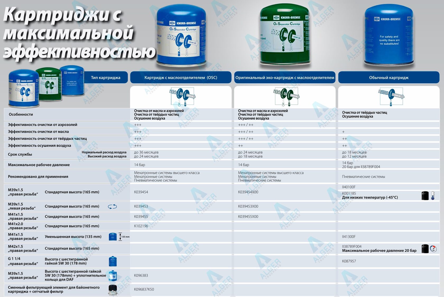 Постер с оригинальными номерами сменных картриджей Knorr-Bremse